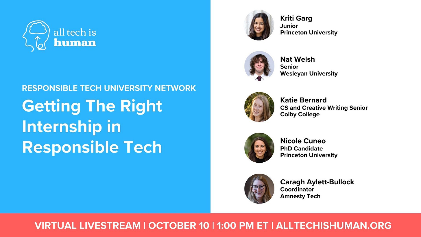 👋RELATED EVENT: For college students interested in Responsible Tech Careers, please join us in NYC on Nov 16th at New York Tech for an event with our Responsible Tech University Network! REGISTER HERE