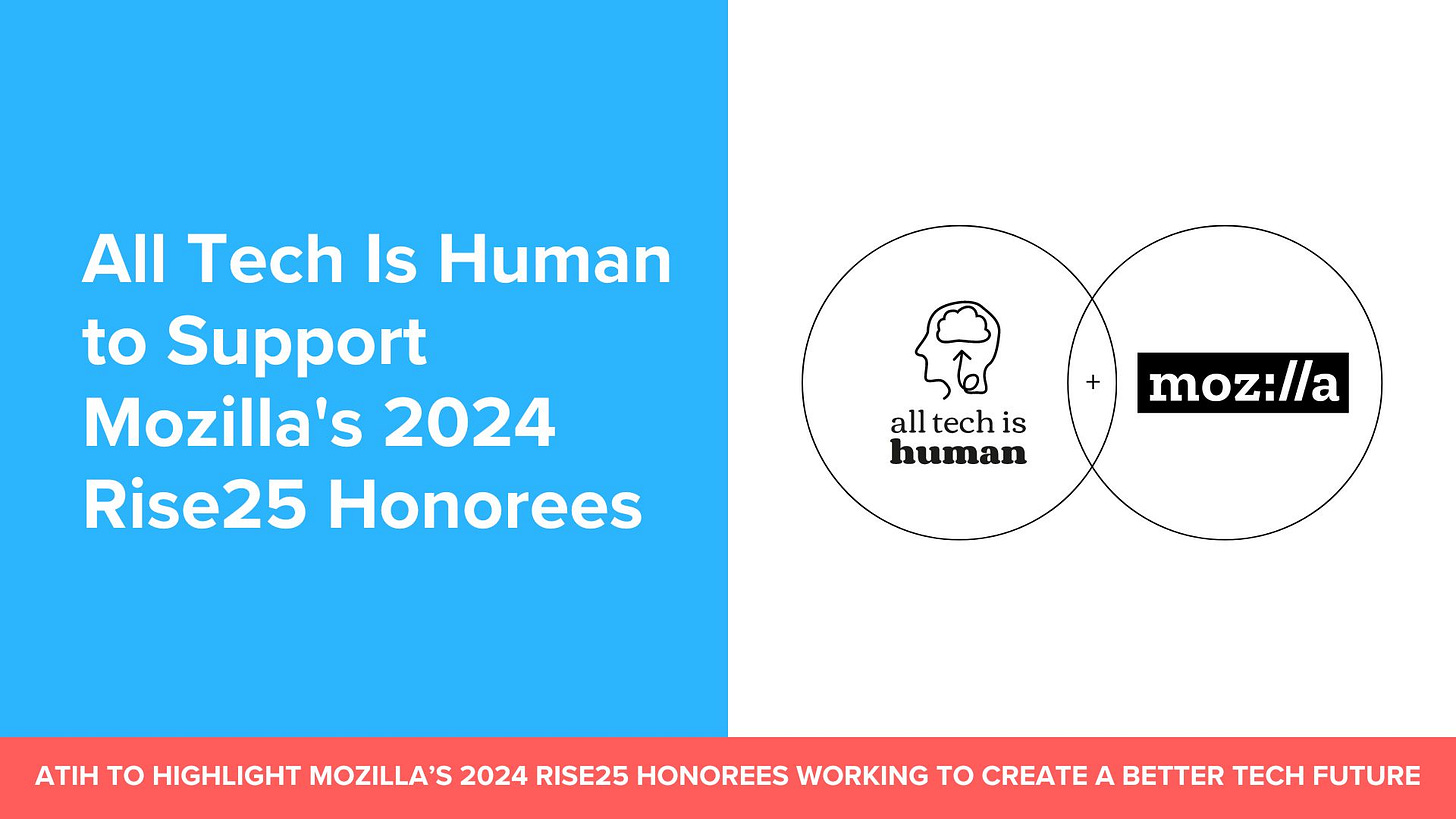 All Tech Is Human is privileged to partner with Mozilla for its second annual Rise25 Awards to honor the people working to create a trustworthy AI future.